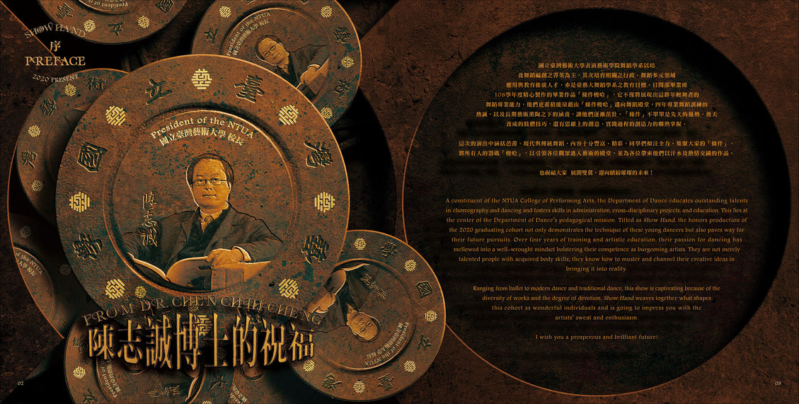 NTUA President/ CHEN Chih-Cheng. Vice President/ HSUEH Wen-Jean, Isabelle WU. Deputy Director/Chair/Artistic Director/ TSENG Jao-Hsun.